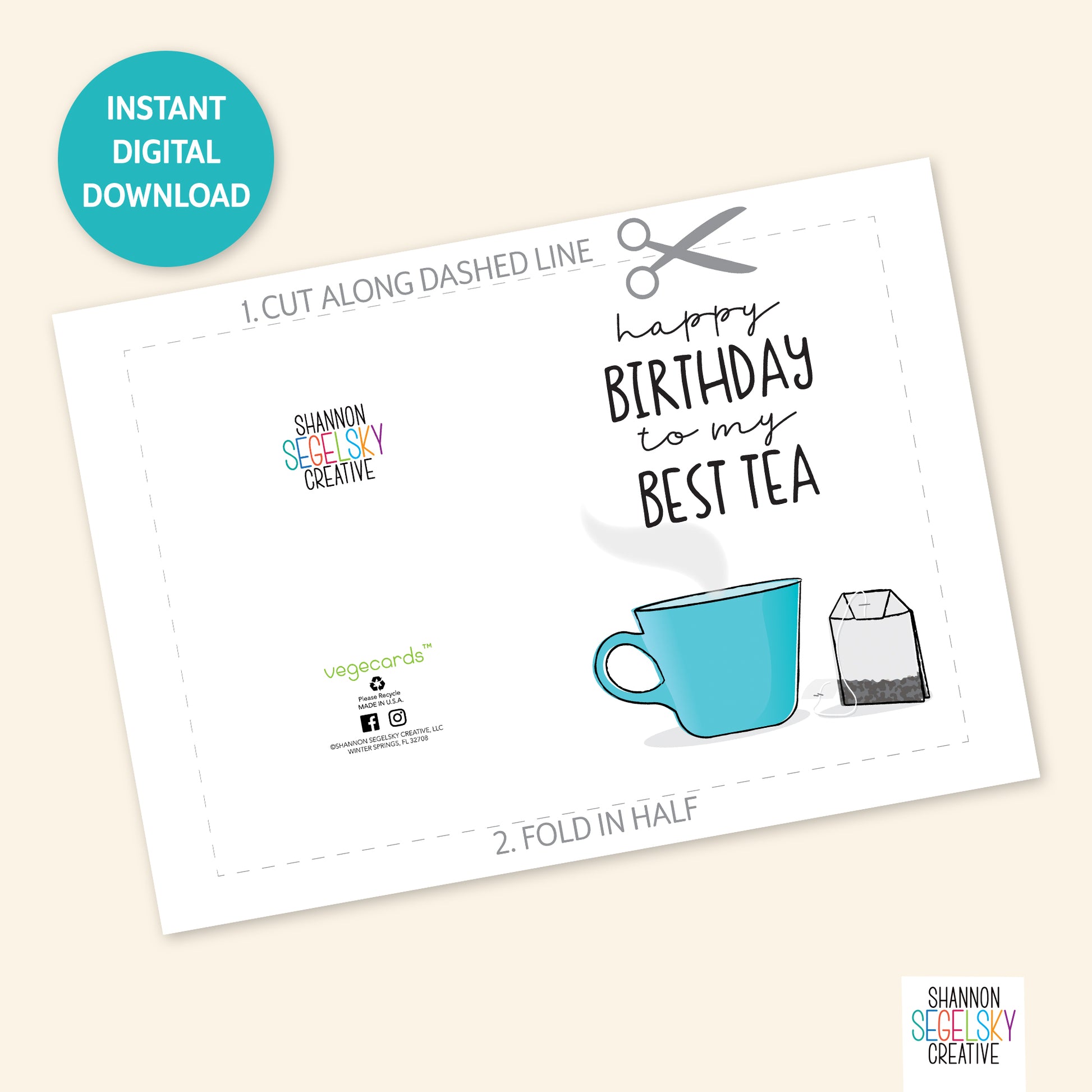 Send your Best-Tea this vege-punny card to celebrate their birthday. It was personally designed by me. This is a digital download only. No physical item will be sent to you. All you need to do is download your purchase, print, cut, fold and enjoy. The inside of the card was left blank for your special message.