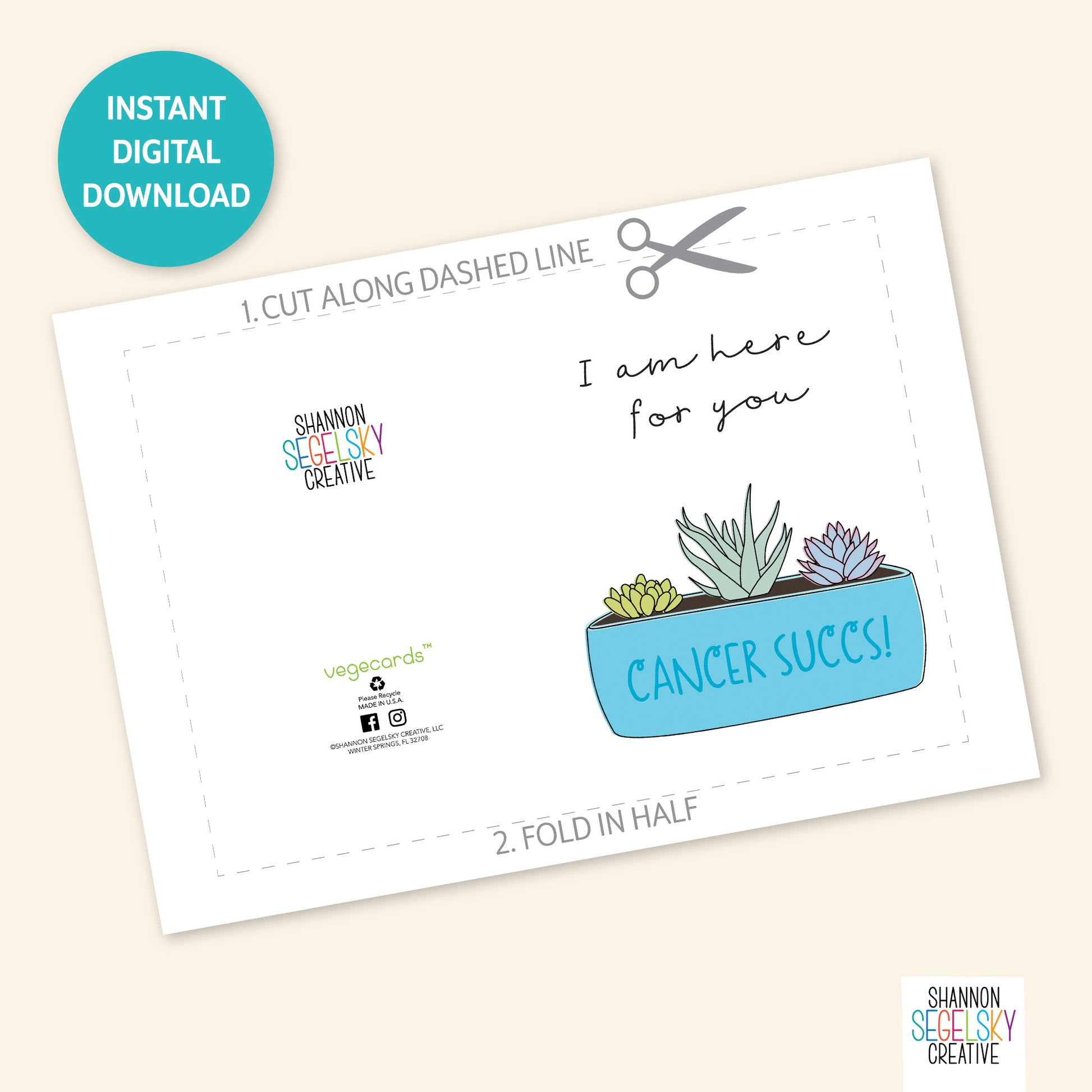 VegeCards® Cancer Succs PRINTABLE Greeting Card - 5x7 (A7) - Instant Digital Download