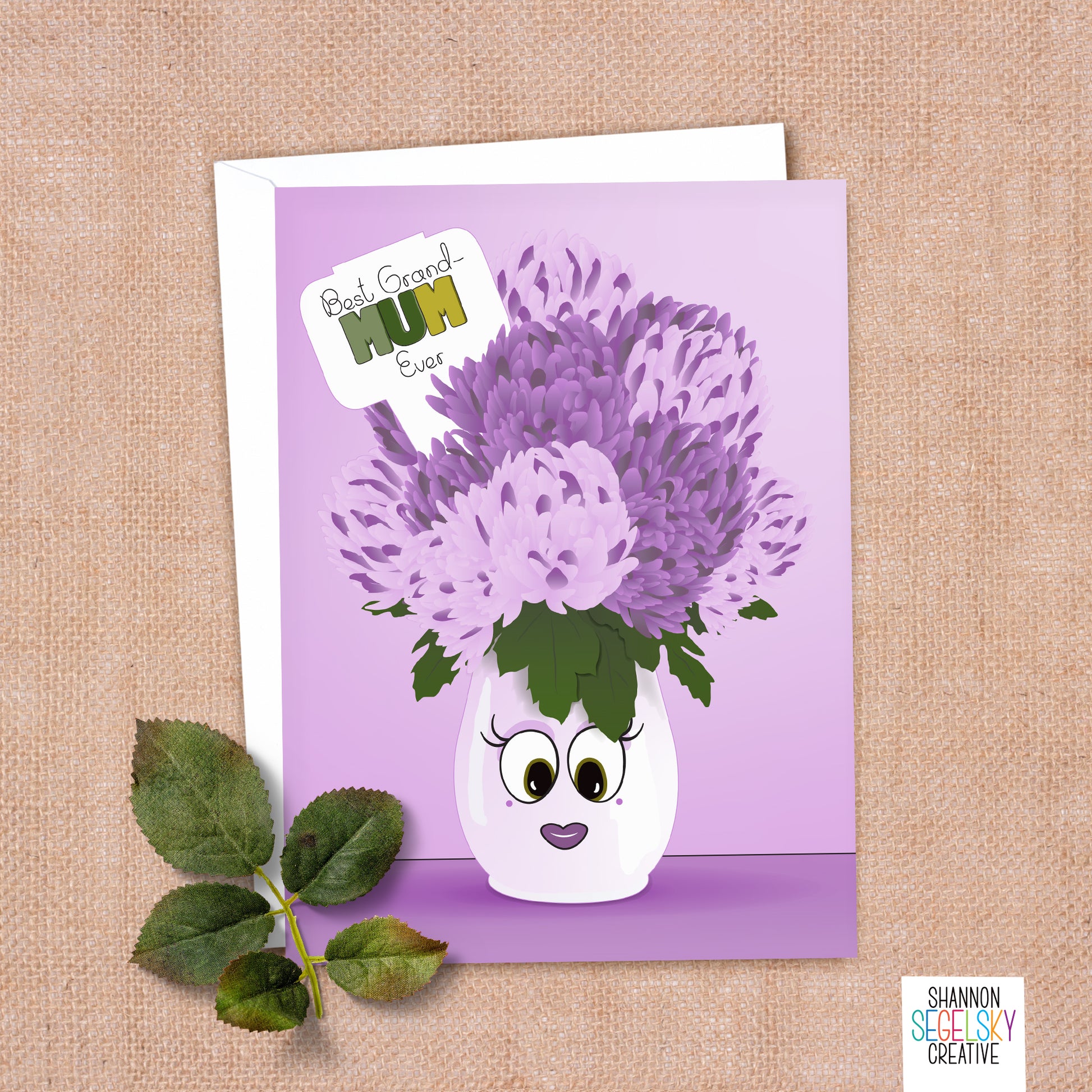 Do you have the Best Grand Mum Ever? Celebrate her any day with this flower pun greeting card. It was hand illustrated and packaged in house. We also have a Best Mum edition.
