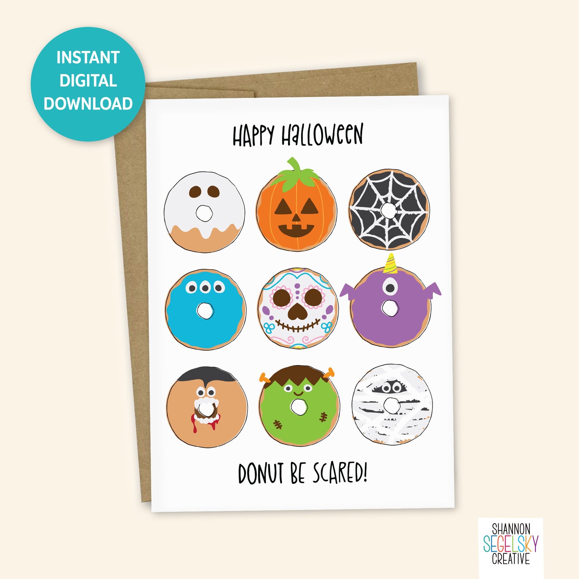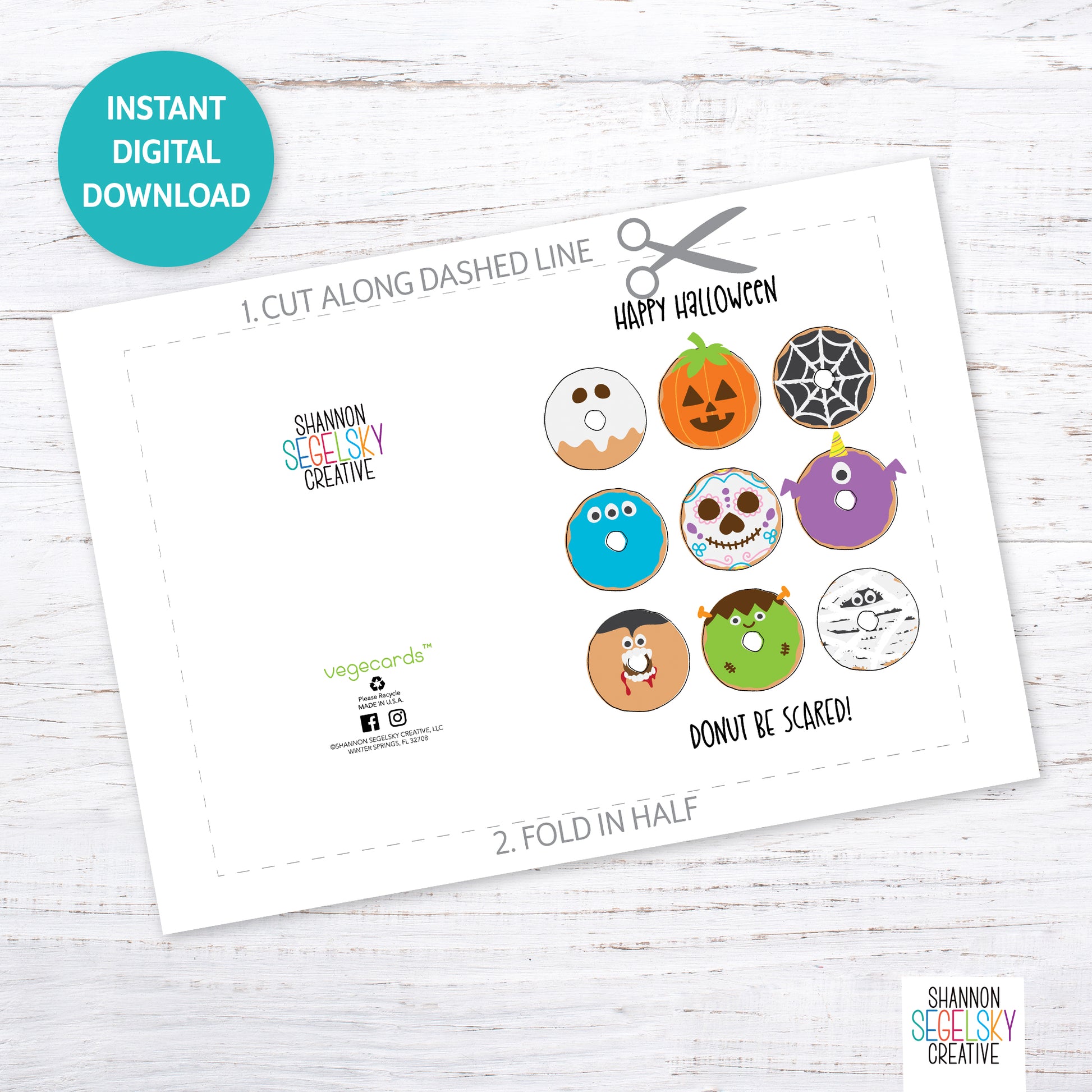 VegeCards® Happy Halloween - Donut Be Scared PRINTABLE Greeting Card - 5x7 (A7) - Instant Digital Download